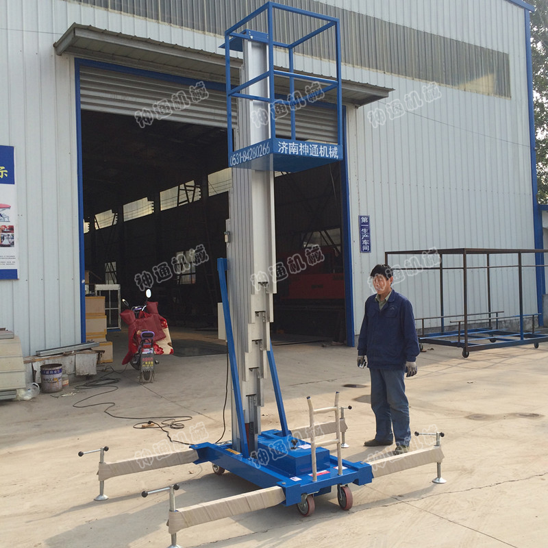 產品介紹:鋁合金式液壓升降平台采(cǎi)用高(gāo)強度優質(zhì)鋁合金材料(liào),具有造型美觀、體積小(xiǎo)、重量輕、運轉(zhuǎn)靈活,推行方(fāng)便。升(shēng)降平穩、安全可靠等(děng)優點。雙柱鋁合金式升降機能穿越一(yī)般門廳,可隨意進出電梯,能在(zài)極小的空間內發揮最高的舉升能力。使雙人高空(kōng)作業變得輕而易舉。且耗(hào)電少、無汙染、工作時(shí)不傷(shāng)地麵(miàn),可(kě)用(yòng)於貼牆作(zuò)業(yè)及探出作業。鋁合金升降平台分為單柱、雙柱、三柱和(hé)四柱等。