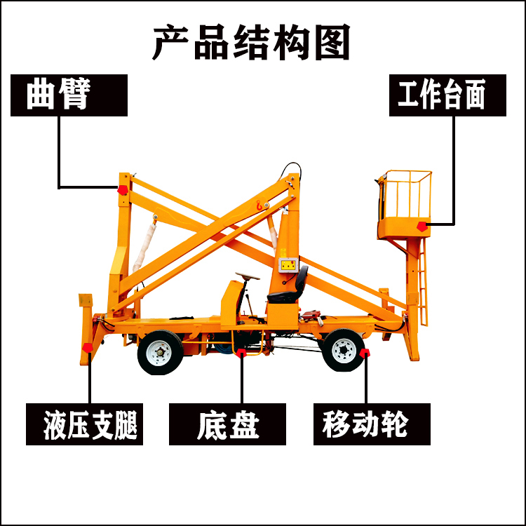 產品說(shuō)明:曲臂式液壓升降平台是垂(chuí)直式、剪叉式曲液壓升降平台的替代產品。曲臂式電動升降機利用柴油機為動力,加電瓶采(cǎi)用電啟動,自(zì)支腿、自升降、自行走(zǒu),360°旋轉作業(yè)。曲(qǔ)臂(bì)式電動升降機具有操作簡單,使用方便,作業麵大,特別是能夠懸伸(shēn)作業,跨越一定的障礙物或在一處(chù)升降,可進行大範圍多點高(gāo)空作業的特點,極大地提(tí)高了工作效率。該係列曲臂(bì)式高空作業車廣(guǎng)泛用於(yú)市政、電力(lì)、路燈、公路、碼頭、廣告、園林(lín)、小區物業、廠礦企業車間(jiān)等行業範圍升降作(zuò)業。